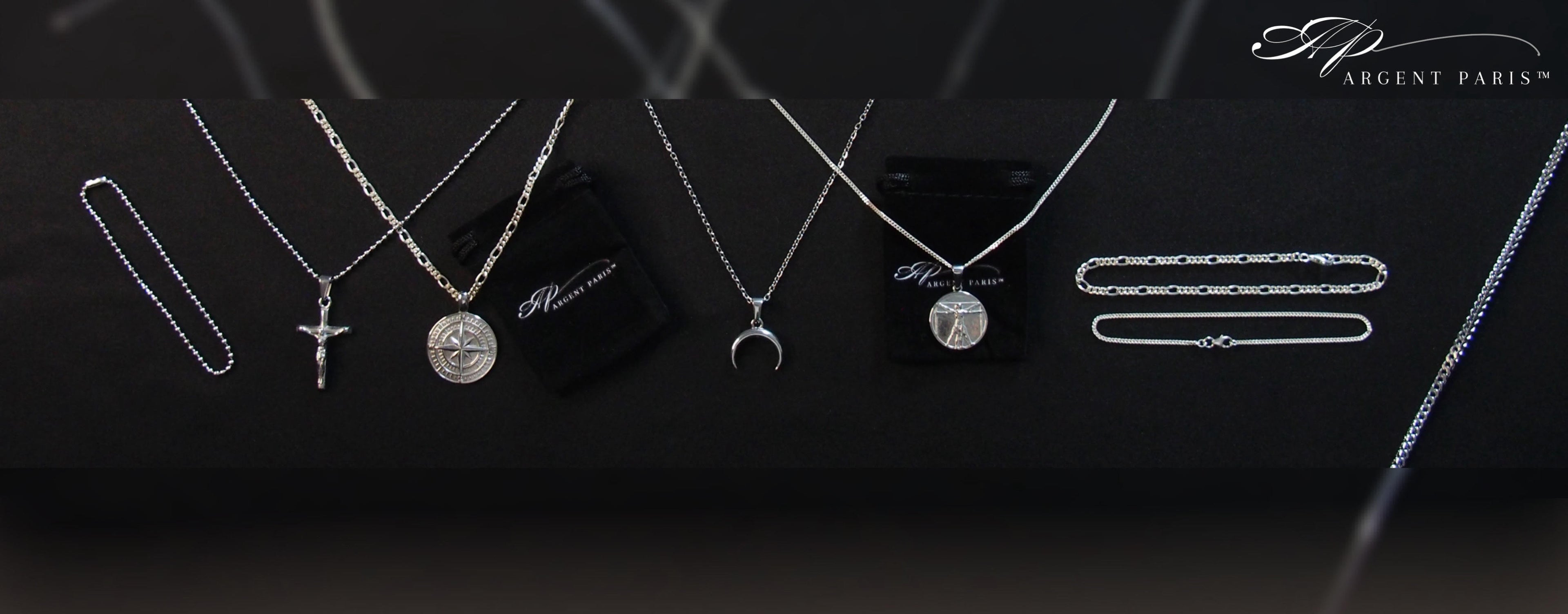 Découvrez nos pendentifs pour homme en argent avec leurs colliers personnalisables.